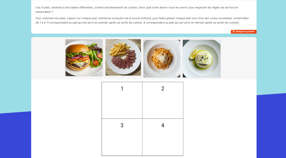 Les tests de recrutement Hôtellerie permettent d’identifier le niveau d’expertise des candidats dans les métiers de l’accueil et du service hôtelier. Selon la compétence ciblée par le recruteur, les questions de typologies variées évaluent leurs connaissances et compétences essentielles dans un contexte professionnel. Ces tests mesurent la capacité des candidats à assurer un service client de qualité, à gérer la relation avec les clients, à organiser et superviser les opérations de la salle et des chambres, ainsi qu’à appliquer les normes d’hygiène et de sécurité. Ils évaluent également la maîtrise des procédures d’accueil, la coordination avec les différents services de l’établissement et la réactivité face aux situations imprévues.